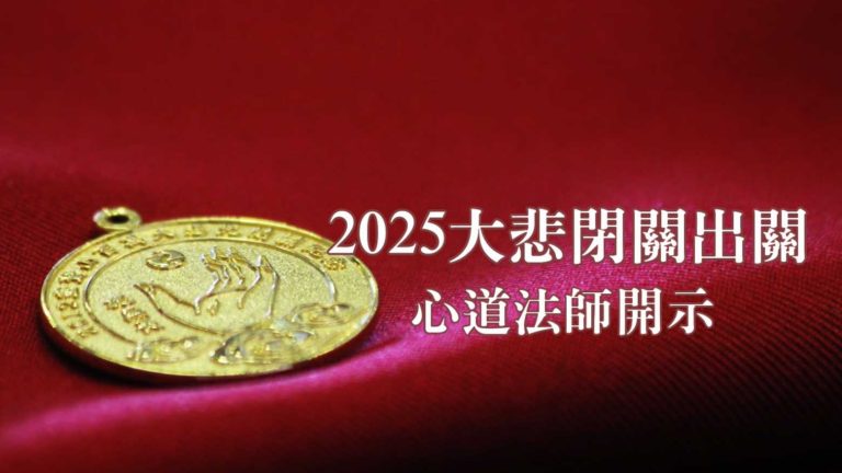 心道法師勉勵閉關學員,透過大悲咒的修持,沉澱內心,開啟慈悲智慧,將個人修行擴展至家庭、社會與世界。面臨極端氣候、戰爭、生態破壞等挑戰唯有回歸靈性,才能轉化當前困境。不只為自己修行,更為一切眾生,願大悲咒的功德回向世界平安。